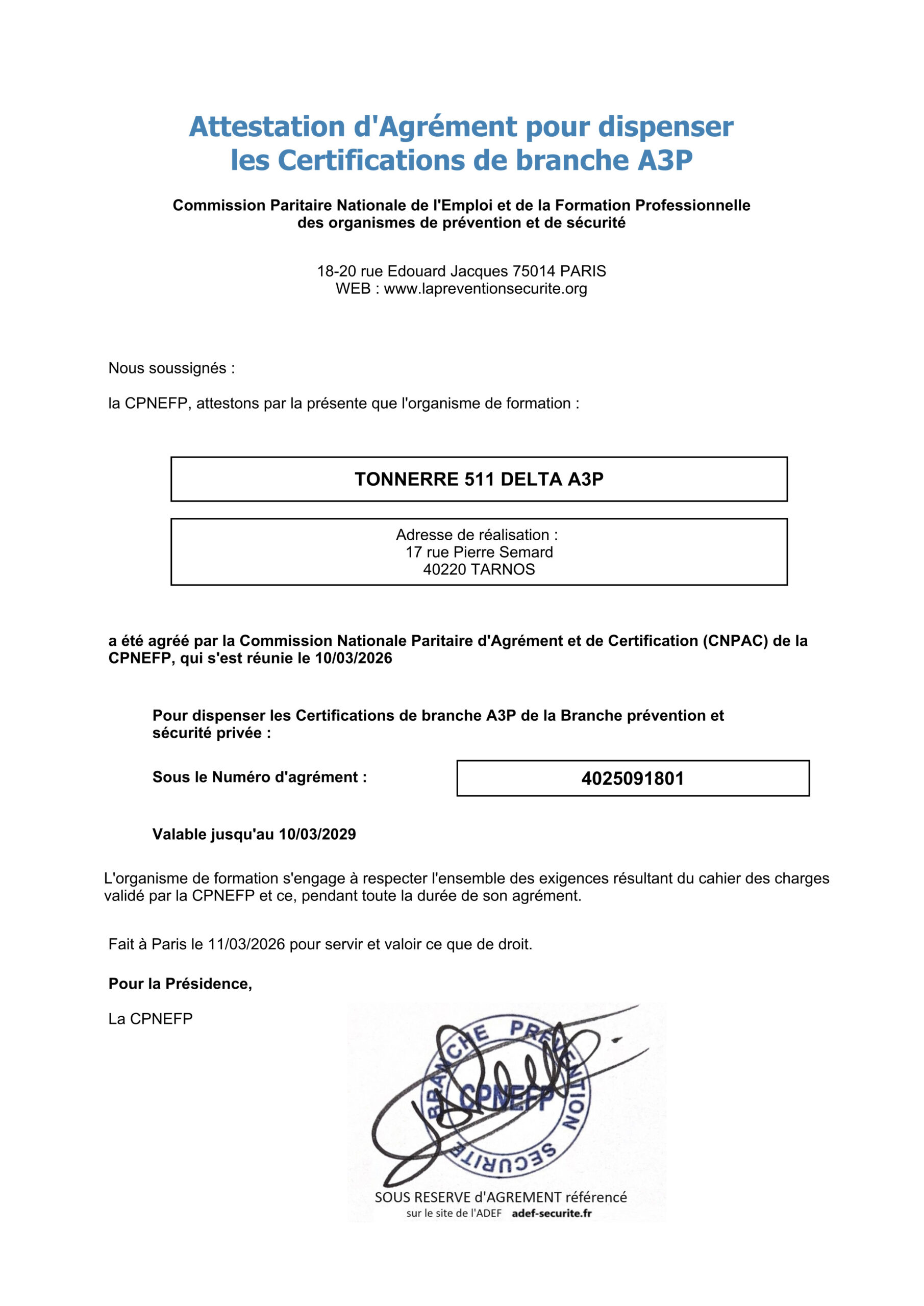 - Autorisation CNAPS Formateur — Tonnerre Formation